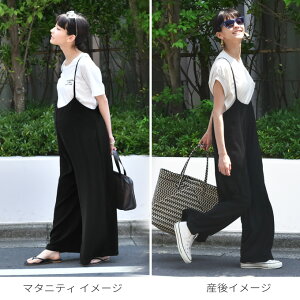マタニティ サロペット 授乳服 オールインワン マタニティパンツ マタニティ 夏 パンツ ボトム ボトムス ワイド 春夏 妊婦服 産前産後 オシャレ おしゃれ 可愛い かわいい ブラック 黒 ネイビー 紺 ベージュ Pearls パールズ