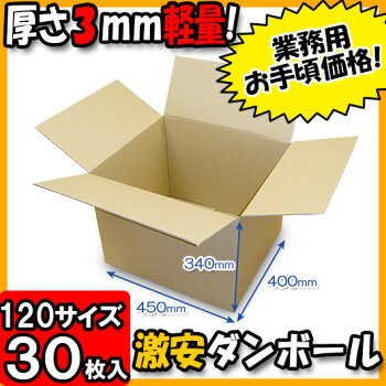 【あす楽】ダンボール 厚さ3mm [宅配120]外寸450*400*340mm 30枚セット 120サイズ 【ダンボール 120サイズ ダンボール箱 収納 段ボール 収納 宅配 宅配用 発送用 宅配箱 段ボール箱 梱包用】軽量 軽い 120size